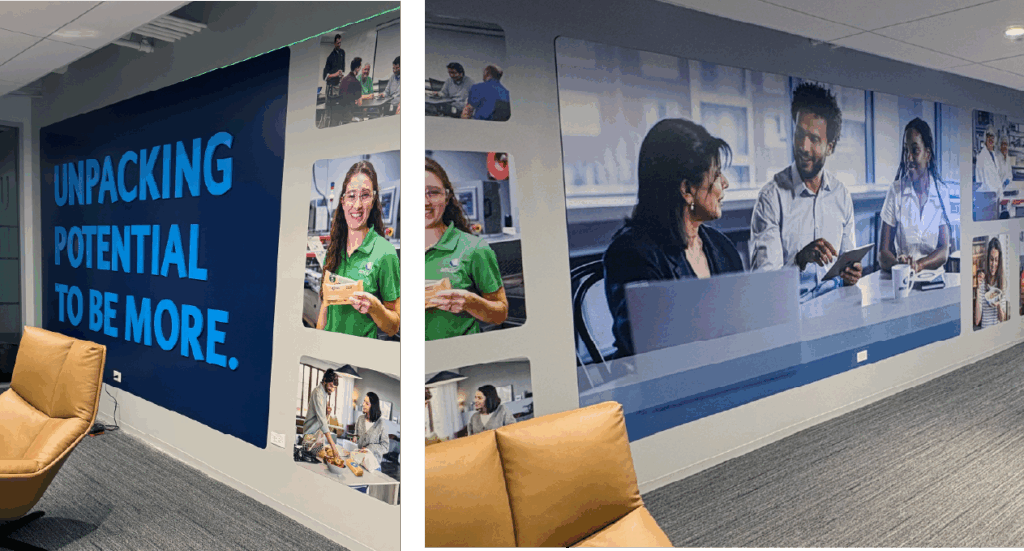 When Amcor moved into their new 60,000 sq. ft. headquarters, the space was filled with blank white and gray walls.